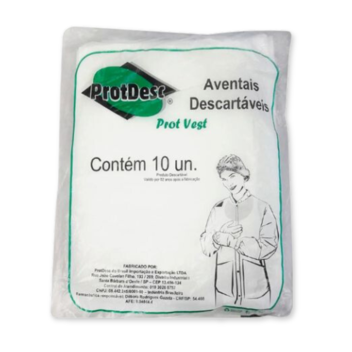Avental Descartável Sem Manga Branco 20gm Protdesc 10 Unidades: Ideal para uso hospitalar e estético, sendo perfeito para procedimentos, exames e ambientes que exigem higiene constante.
