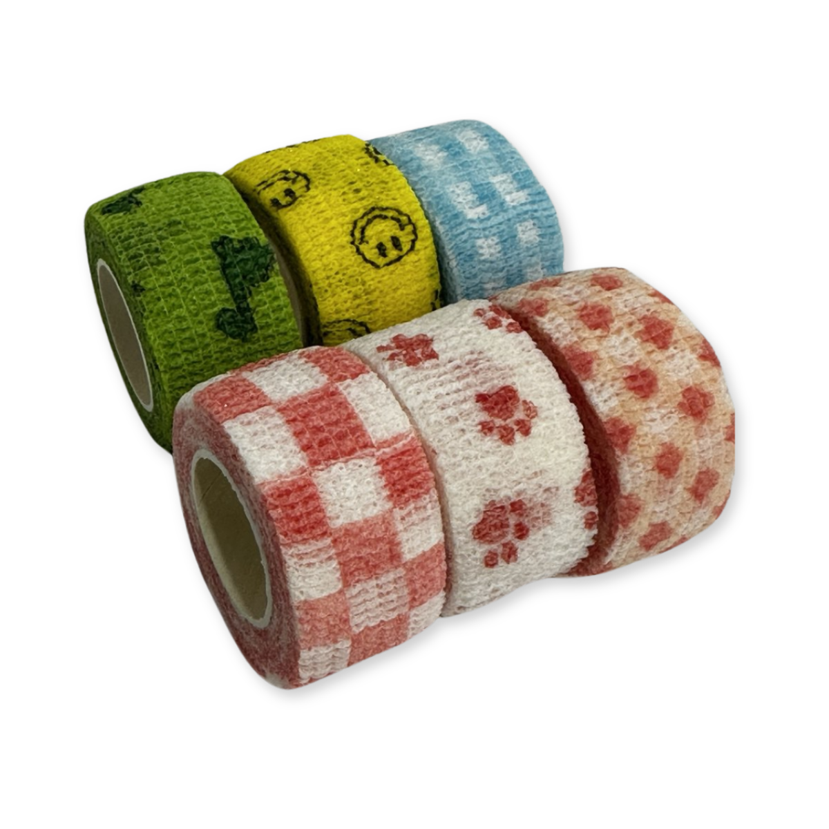 Bandagem Elástica Estreita Com Desenhos: Solução prática e eficiente para envolver aparelhos, proporcionando conforto e segurança durante o uso. Ideal para evitar derrapagens e proteger o equipamento.
