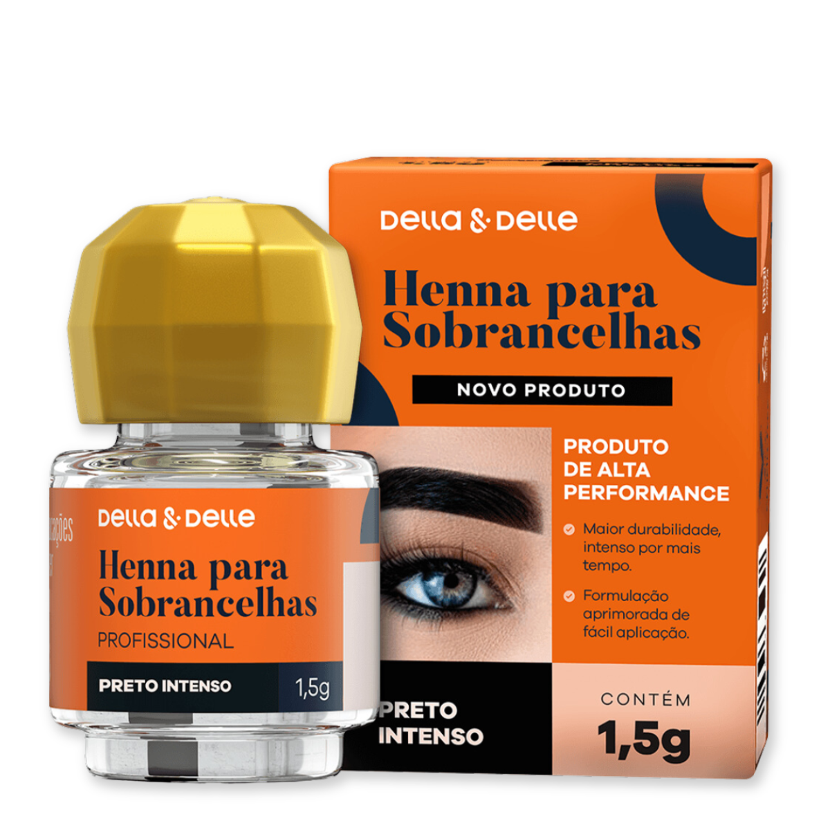 A Henna para Sobrancelhas Della & Delle é uma henna natural, vegana e cruelty free que oferece cobertura de falhas, alta durabilidade e praticidade na hora da preparação.