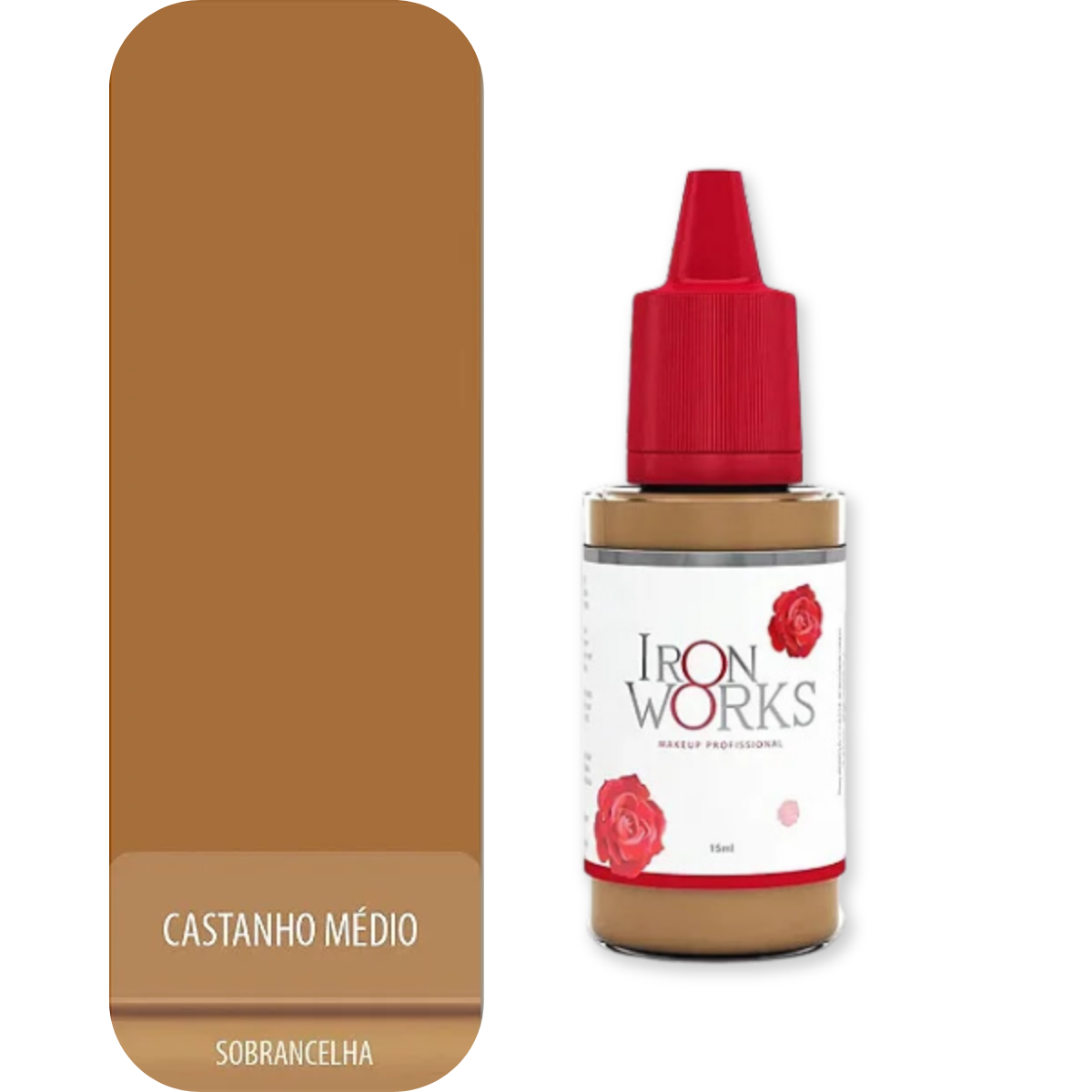 Pigmento Iron Works Castanho Médio 15ml: Pigmento neutro, ideal para qualquer tipo de sobrancelha. Pode ser usado puro ou em misturas, servindo como base para clarear ou escurecer outros tons.