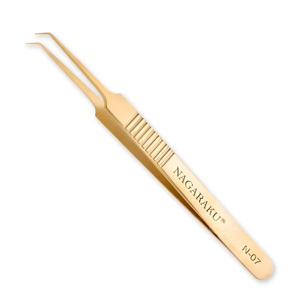 Características: Pinça Nagaraku N-07 profissional para extensão de cílios, tem sua ponta fina e curva, fabricado em Aço Inox, se destaca pelo seu design diferenciado. Fácil de manusear, as pinças da Nagaraku são super leves e flexíveis, possuem alta precisão e são resistentes contra corrosão.