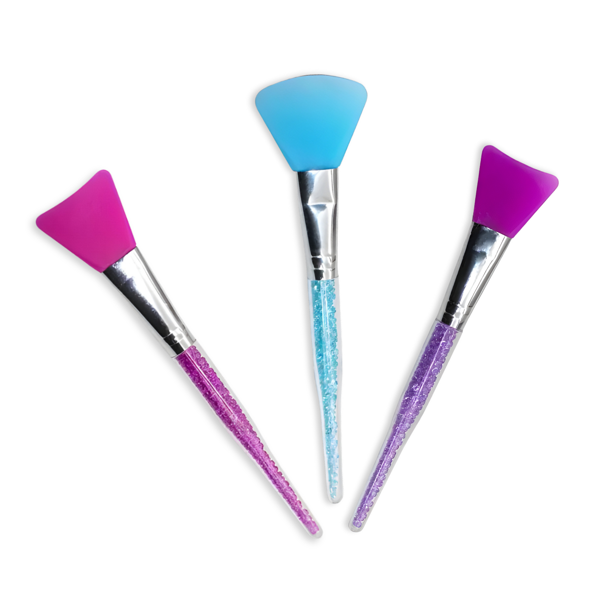 O Pincel Espátula Facial de Silicone Com Glitter para Skincare possui cerda de silicone e um formato angulado, que facilita a aplicação de produto em todas as partes do rosto.