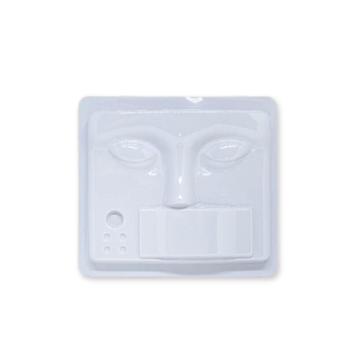 Possui local para fixar o chicote de fios, as gotas do adesivo, o protetor de pálpebra e os cílios sintéticos de treino.