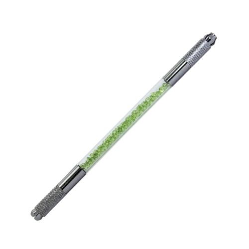 Tebori cristal 2 pontas cromado, ótimo para micropigmentação, perfeito para construção fio a fio, com dupla ponta o que permite usar todas as lâminas existentes no mercado e também utilizar duas laminas ao mesmo tempo, uma em cada extremidade da caneta tebori.
